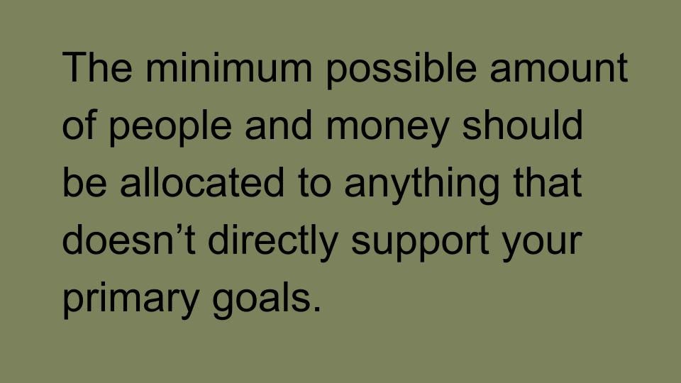 Any dollar or hour spent on efforts that do not advance your biggest opportunity should be reallocated until that opportunity is fully funded and staffed.